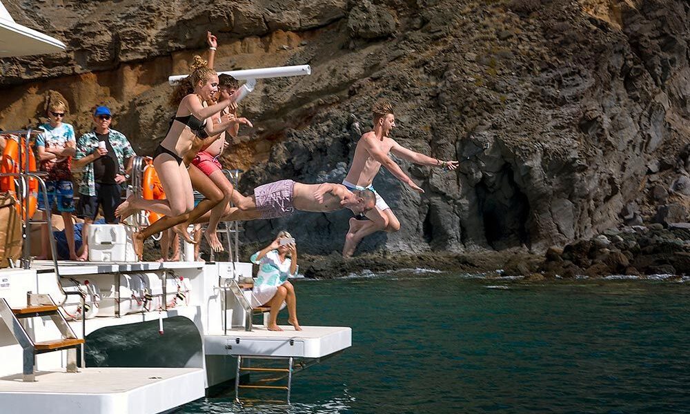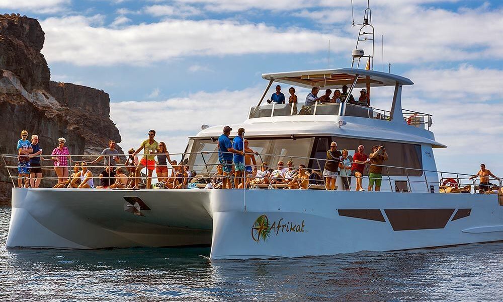 Departing from 09.30 to 14.00 during Summer or 10.00 to 14.30 during Winter, you can enjoy a 4 and 1/2 hour excursion of relaxation, fun and adventure onboard our beautiful catamaran, and see the amazing island of Gran Canaria from a different perspective – on the sea!